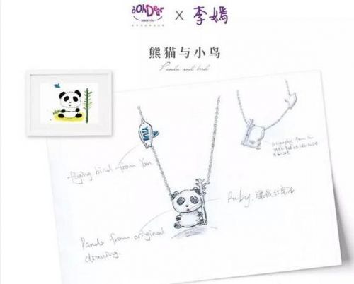 说起这个项链的来源,还要从李嫣5岁时说起。当时,李嫣因为有感于电视里对于四川地震灾情的报道,于是便画了这幅充满爱心的熊猫作品,此作品也在2013年的嫣然慈善拍卖会上,最终以100万拍卖成交。但是父母出于对孩子的保护,最终选择收藏了这幅画。