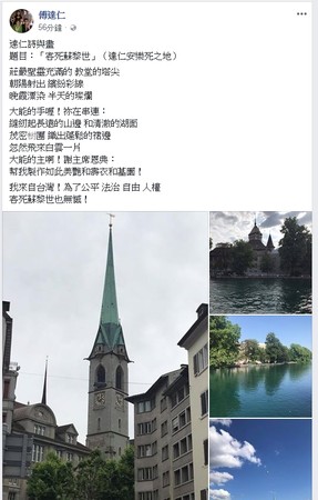 事实上,傅达仁晚年饱受胰脏癌之苦,从一年前就开始积极推动台湾通过安乐死法案,自己也取得在瑞士的“绿灯”资格。他原本预计过年前赴瑞士执行,儿子傅俊豪提前办婚礼冲喜,为此忍受打针吞药,得以看见儿子大婚,经历多次延后,以及好友千里赶来挽留,仍没有打消念头:“人必有一死,送君千里终有一别!” 原标题:傅达仁自证7日在瑞士安乐死:送君千里终有一别