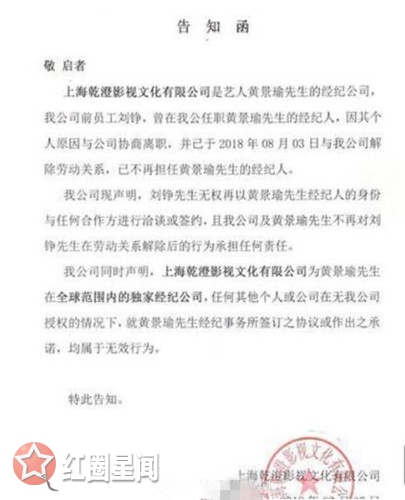 黄景瑜自出道以来饰演了很多不同类型的角色,打扮接地气也有演技,在圈内小有名气,这都和黄景瑜背后的制作团队有密不可分的联系,黄景瑜也换过不少经纪人,和现任经纪人刘铮关系看上去很好,可近日突然传出消息称刘铮已经辞职了,那么黄景瑜经纪人刘铮辞职是真的吗?虽然黄景瑜和刘铮相处的不错,但关于刘铮的负面消息一直不少,经常被人吐槽不干活。 黄景瑜凭借网剧《上瘾》出道,出道后参演了《结爱》和《红海行动》等一系列作品,在圈内评价不错。作为明星,换经纪人是比较正常的事情,黄景瑜出道以来,已经换过多位经纪人了。 这次被换掉的是现任经纪人刘铮,据说是刘铮主动辞职的,理由是个人原因。黄景瑜经纪公司乾澄影视已经发表了一封告知函,通知大家刘铮已经不是黄景瑜的经纪人了,没有权利继续洽谈合约。 声明 这个消息来的突然,之前黄景瑜和刘铮关系很好,经常一起出门,参加活动的时候,刘铮也紧跟黄景瑜脚步,经常被拍到同框,从两个人相处的举动来看,没有任何不和迹象。 不过除了黄景瑜,大家都对刘铮不太满意,不少网友认为刘铮一直在拖黄景瑜后腿,称要不是黄景瑜和经纪公司厉害,光凭刘铮的能力,黄景瑜根本走不到今天。