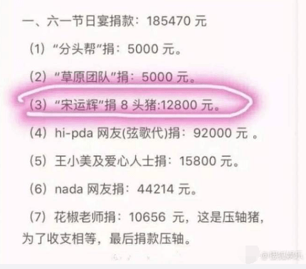 搜狐娱乐讯 近日,王凯的粉丝以王凯新剧角色的名义给云贵川贫困山区发起捐赠活动,但惹人注目的是其中一位名叫“宋运辉”的网友竟然捐的是八头猪!